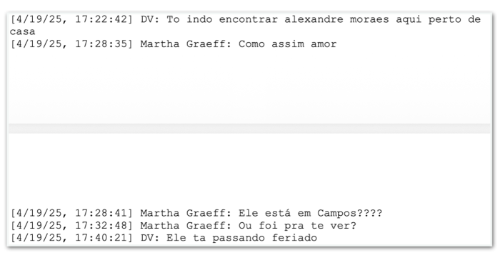 As mensagens que citam o ministro datam de março e abril de 2025,